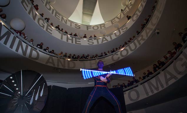 Lemmi-LED-Show-Faecher-BMW-Museum-Publikum
